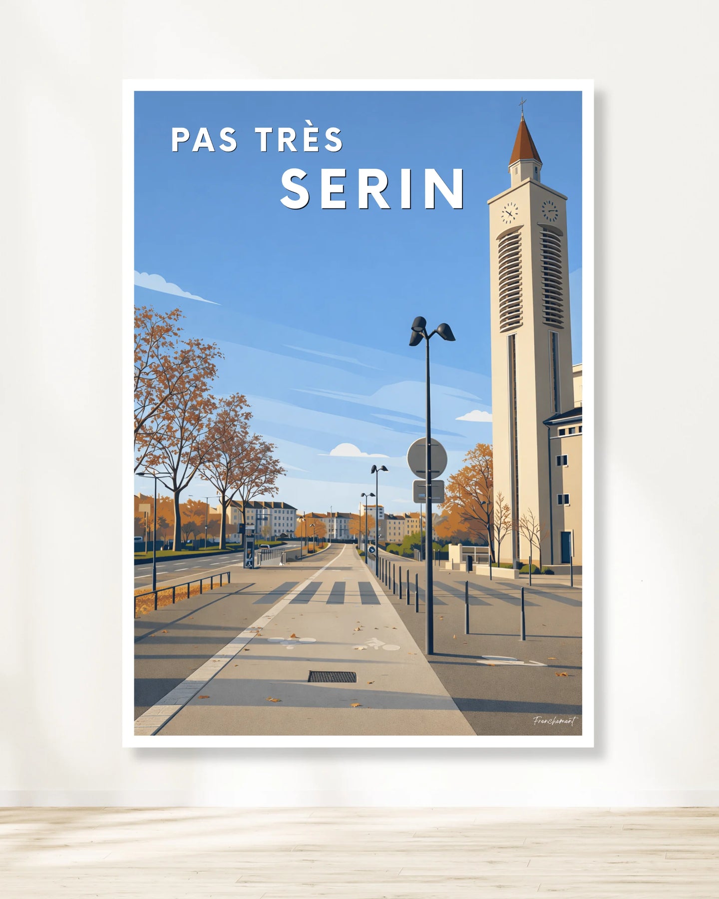 Voies rapides, berges aménagées, vues sur Fourvière, circulation fluide… Serin reflète un Lyon brut, graphique et résolument moderne. Cette création joue avec les codes de la décoration murale, avec parfois une touche d’humour discret, pour proposer une affiche humour urbaine et minimaliste, qui fonctionne aussi parfaitement en poster Lyon.